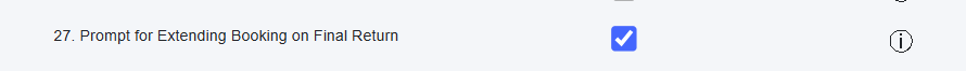 - Barcode Parameter 27 ‘Prompt for Extending Booking on Final Return’